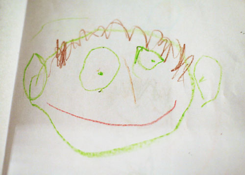 Tonight we were doing some of his homework and he had to draw a picture of himself. I love this!