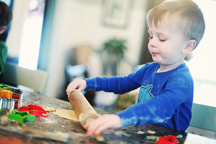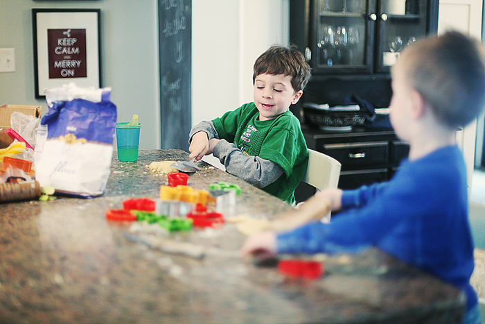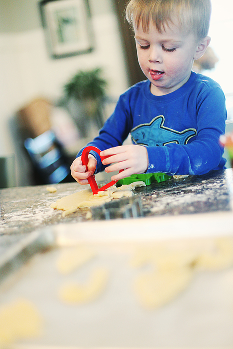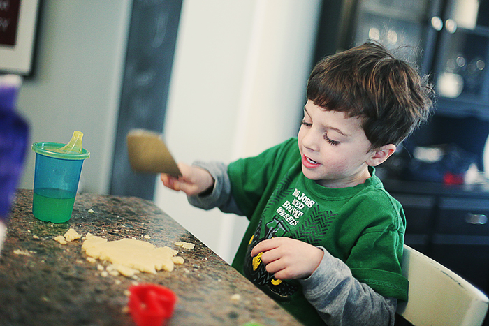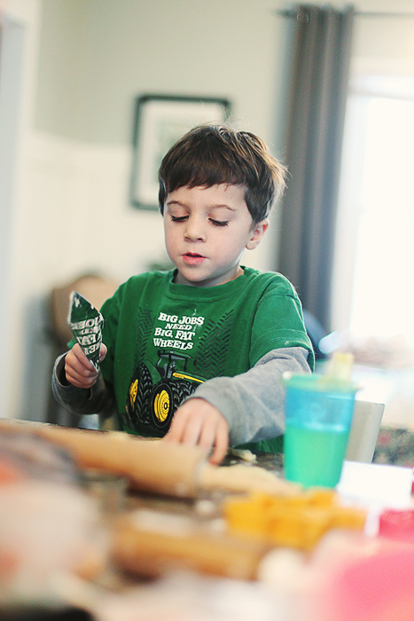 Saturday (yes, before I started puking) we made some sugar cookies.  The boys had so much fun playing with the dough and cutting out shapes.