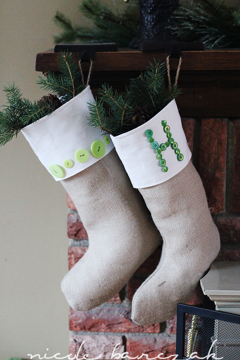 I also decided to make our family matching stockings.  I found these burlap stockings and fell in love.