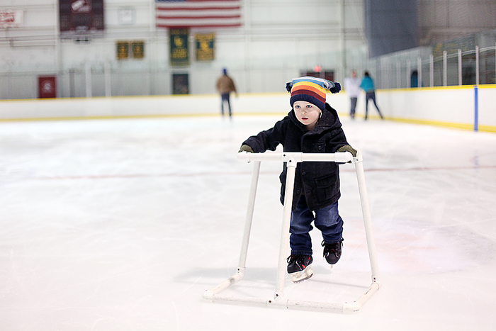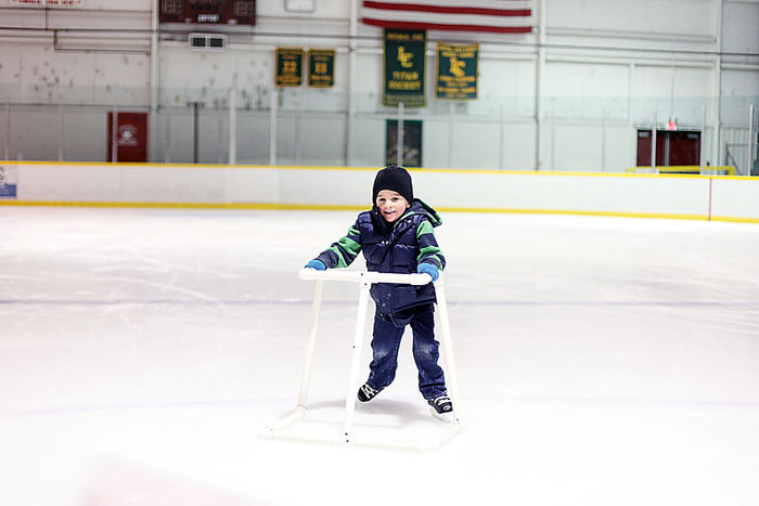 Hudson started out really wobbly… a lot wobblier than Porter ever was.  I was second guessing my decision to bring him… thinking I’d be holding him up most of the time.  Not so.  Within 10 minutes he’d gotten the hang of it and was going all around the ice on his own (with the walker).  Porter was a wild man, zooming here and there, trying to do spin stops and spin around (maybe he should take up figure skating?  HAHA!).  The boys blew me out of the water by skating for the entire hour and a half of open skate.  They did not want to take any breaks and had a little protest when I told them we needed to go.