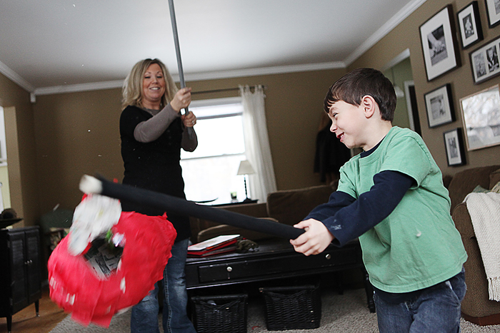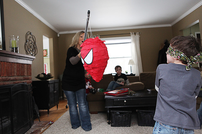 The kids did the pinata first… everyone got a couple good whacks on it and then Lukas busted it down! Aubri didn’t want a turn. Nolan looked like he was ready to blow it out of the house! Future baseball player, no?