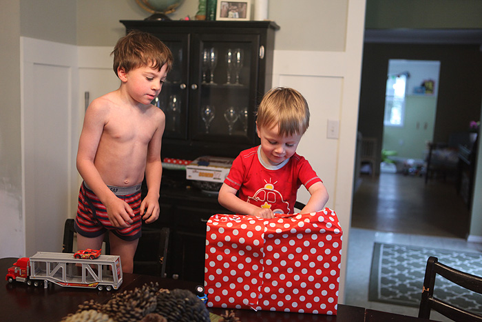 Hudson opened his present from Porter and when Ry got home we gave him our present… a tractor and trailer.  He loooved it!  Oma stopped by for a minute and then the 4 of us headed to Ann Arbor.