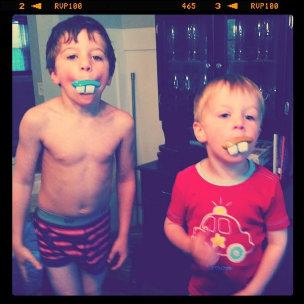 Since Hudson is obsessed with Cars and Mater and all things related, I found these suckers at Toys R Us and had to get them for the boys.  Mater teeth!