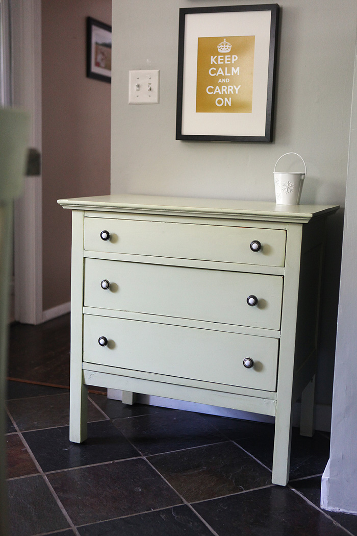 I didn’t get ALL of the crackle off (there are a few recessed corners that I wasn’t diligent on finishing) but regardless, I think it turned out beautifully. I painted it a spring green, the same color as the playroom. I wanted to get antique replica glass knobs but at Menards I found these oil rubbed bronze ones with china in the middle and loved them. This has quickly become one of my favorite pieces. If… if… we ever have a daughter, this will be in her room.