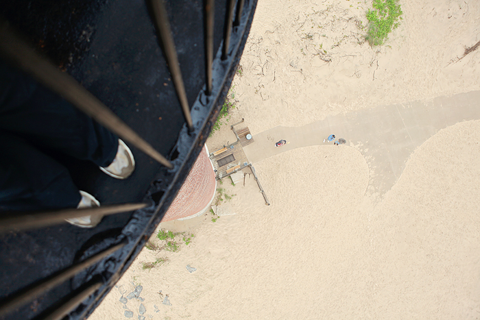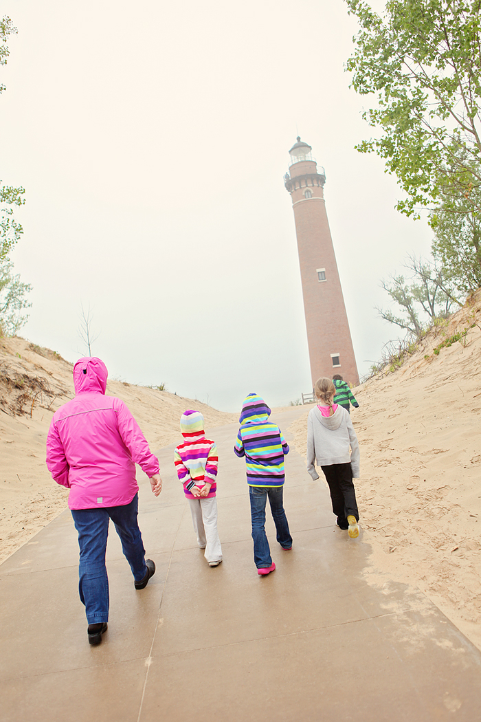 Thursday we took a tour of the Little Sable Lighthouse.  130 steps on a spiral staircase.  It was kind of terrifying to look over the balcony!  The inside was neat, though… so old and vintage.  It was a quick tour… probably took longer to walk up and down than it did to check out the view HAH!  It was really foggy the day we went, so we really didn’t have much of a view.  We’ll have to go back on a clearer day sometime.