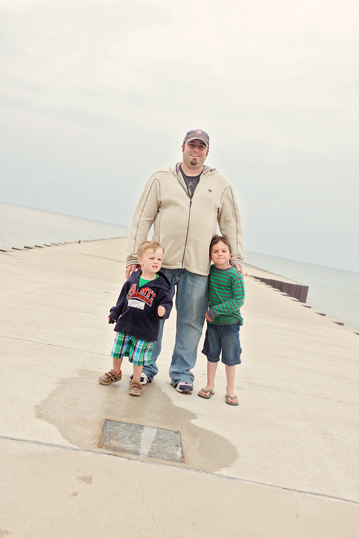 We went into Pentwater one evening for dinner.  Ryan, the boys and I went to the pier for a few minutes and I got a few cute pictures of the kids.  Porter enjoyed watching a loader haul sand out to the beach.  Hudson was terrified of it.