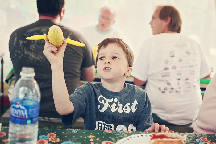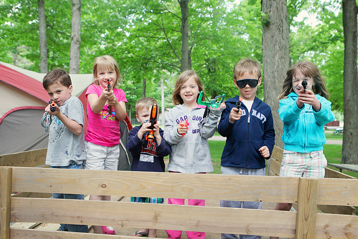 This year of camping is going to be so great…. Porter made so many new friends in the campground and we rarely saw the big kids.  Immediately they all made friends with Drew (see picture below).  Drew had guns and they spent a good part of Wednesday hiding behind trees shooting eachother.  Drew was a sweetheart and if he wasn’t hanging out at our site, Porter was over at his.  Porter also made another friend, Landon, who was camping next to us.  And on the last day he met Jack, whose family has a permanent site/camper up there… so I’m sure Porter will see more of Jack on our trips to Sandy Shores!