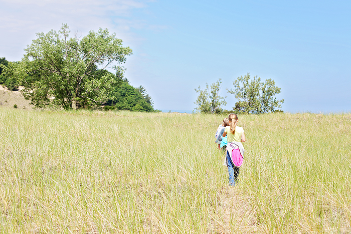 Friday Lori and I took the kids Geocaching.  Our trail was .4 miles and boy were we whooped!  We went through a short trail in the woods, up some dunes, through fields, up more dunes, caught a glimpse of Lake Michigan, up a treacherous dune hill and finally found our Geocache.  We underestimated the sun that day and it was warmer than we anticipated… so the walk home was hot, sweaty and whiny.  I thought it was fun, though!