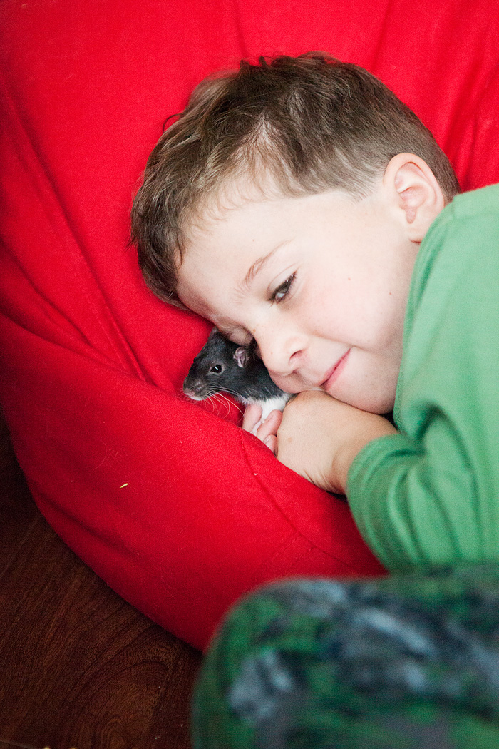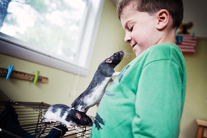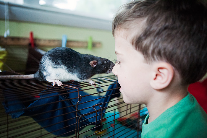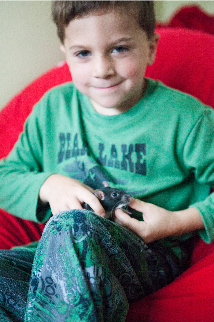 I can’t say enough about rats as pets.  They are entertaining us so much!  Porter spent about an hour in the playroom with them this afternoon, just playing with them and letting them climb around their cage.  They really do have little personalities and are very interactive with you.  They want to be near you and exploring and climbing on you, totally opposite of hamsters which seem to want nothing to do with humans.  If you can get past their kinda creepy tail, they really are so adorable!
