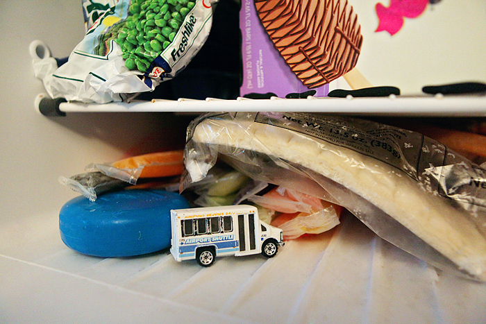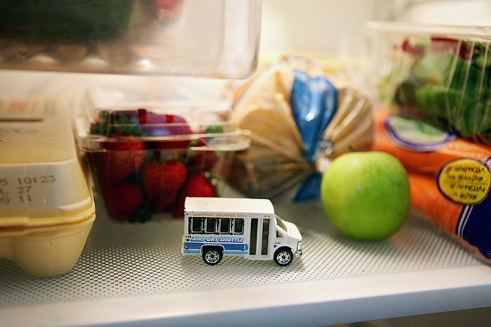 okay, the van in the fridge and freezer totally cracks me up! gotta love the imagination of a little boys mind. i bet that van was hauling FOOD! 🙂