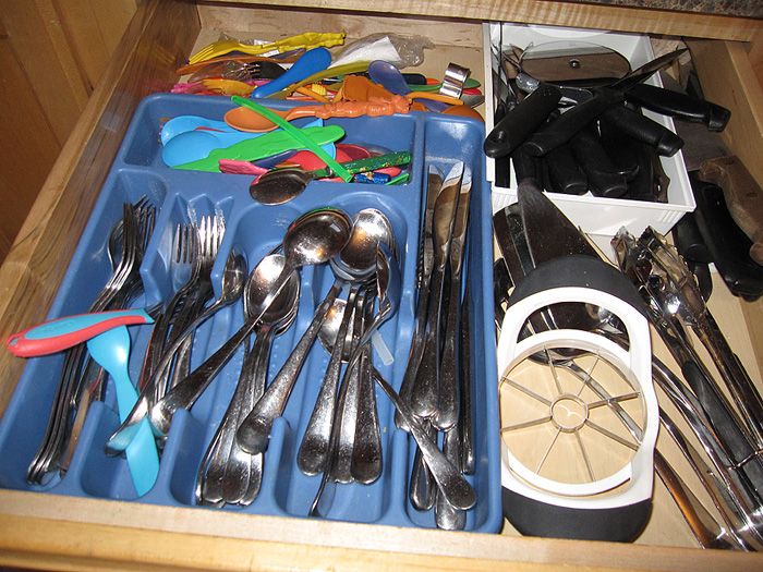 Part of the boys’ chore (err… “teamwork”) responsibility is to put away the clean dishes. We aren’t (or haven’t been) super strict on daily jobs but whenever things need to be done and the boys are around, they are expected to help out. Porter’s job is to empty the dishwasher and put them away, while Hudson’s part of the job is to put away the silverware. Uhm… so it’s not uncommon for our cabinets and drawers to look a little… ehhhh… discombobulated HAHA! It cracks me up to open the cabinets to get a cup or a plate and to find a sight like this.