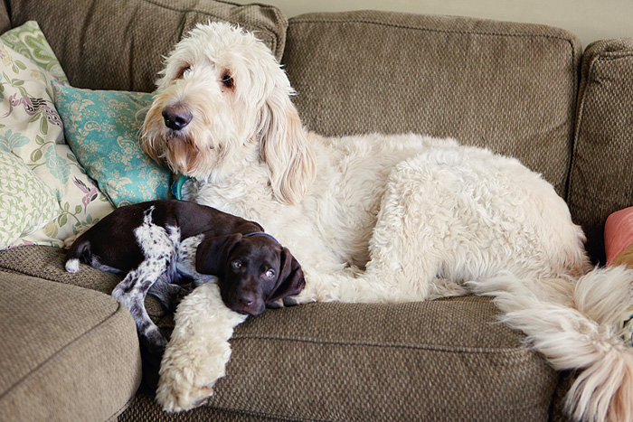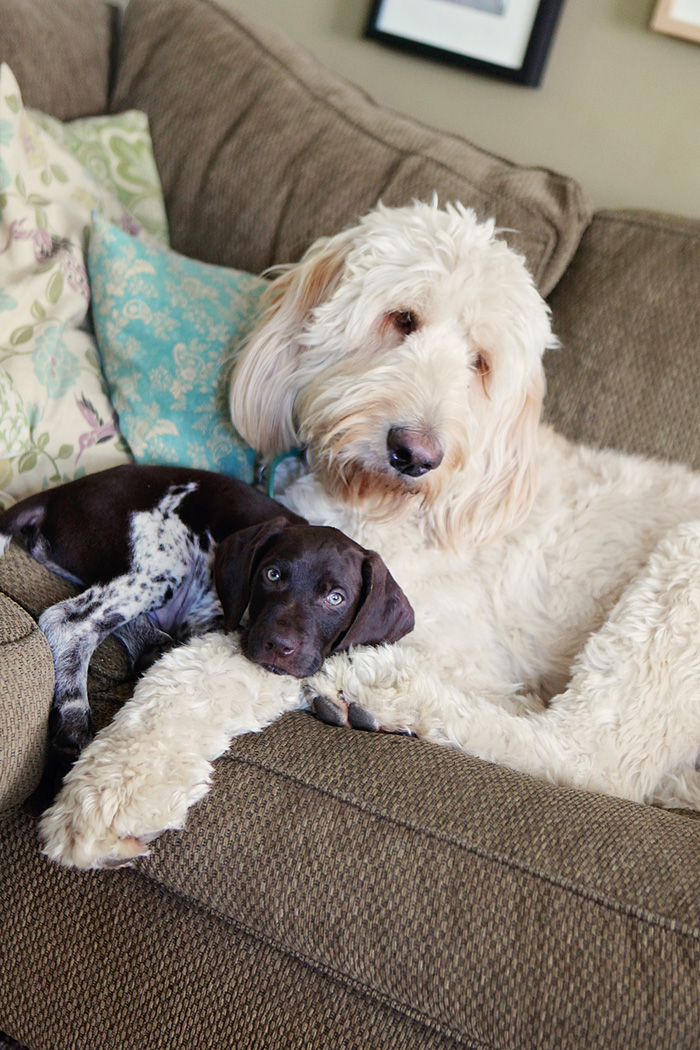 Cooper came home with us almost 2 weeks ago. He’s the cutest little nugget and it cracks me up how tiny he is compared to Duncan. Surprisingly, Duncan is great with him despite their ginormous size difference. He plays very well with him and they definitely keep each other entertained. So far he’s totally spoiled… well, the big one kind of is too 🙂