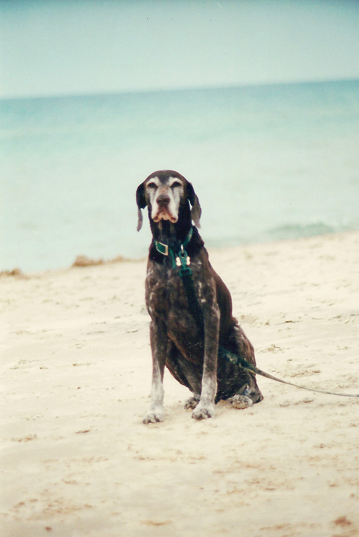 We debated on a few different breeds but one night while lying in bed we brought up Cooper… he was a stray we rescued from a playground in town about… ohh.. 9 years ago or so (Ramsey was about 6 months old when we rescued Cooper). He was a German Shorthaired Pointer and the vet estimated him to be over 11 years old. Despite his age, his obvious graying and aging body, he would still run and jump and fetch a ball with us. He had a sweetness and gentleness that just stole our hearts. And my mom’s, as well. See… she isn’t a dog person at all… AT ALL… but she LOVED Cooper. Cooper was only with us for 6 months before he passed away but in that short 6 months, he was such a charmer.