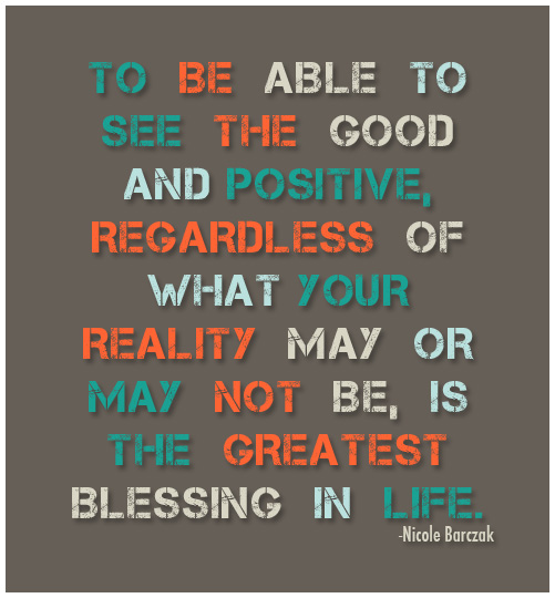 Something I’ve spent a LOT of time working on in therapy (and I realize I don’t write much about it here) is focusing on the positives in my life.  It is so easy for me to get downtrodden about what is going wrong in life, what is negative, what isn’t going my way, that I end up feeling hopless.  In the past 10 months I’ve done a lot of practicing and reading in Mindful Thinking (Moms… read “Momfulness”… SUCH a good bood) and it has really helped me focus on the things I can control, the things that are positive in a situation, regardless of what it may seem to be.