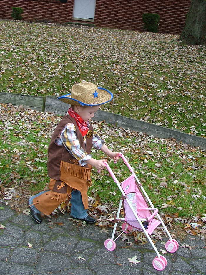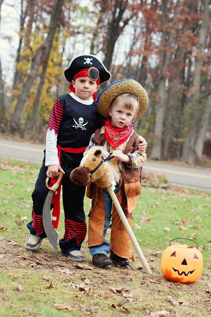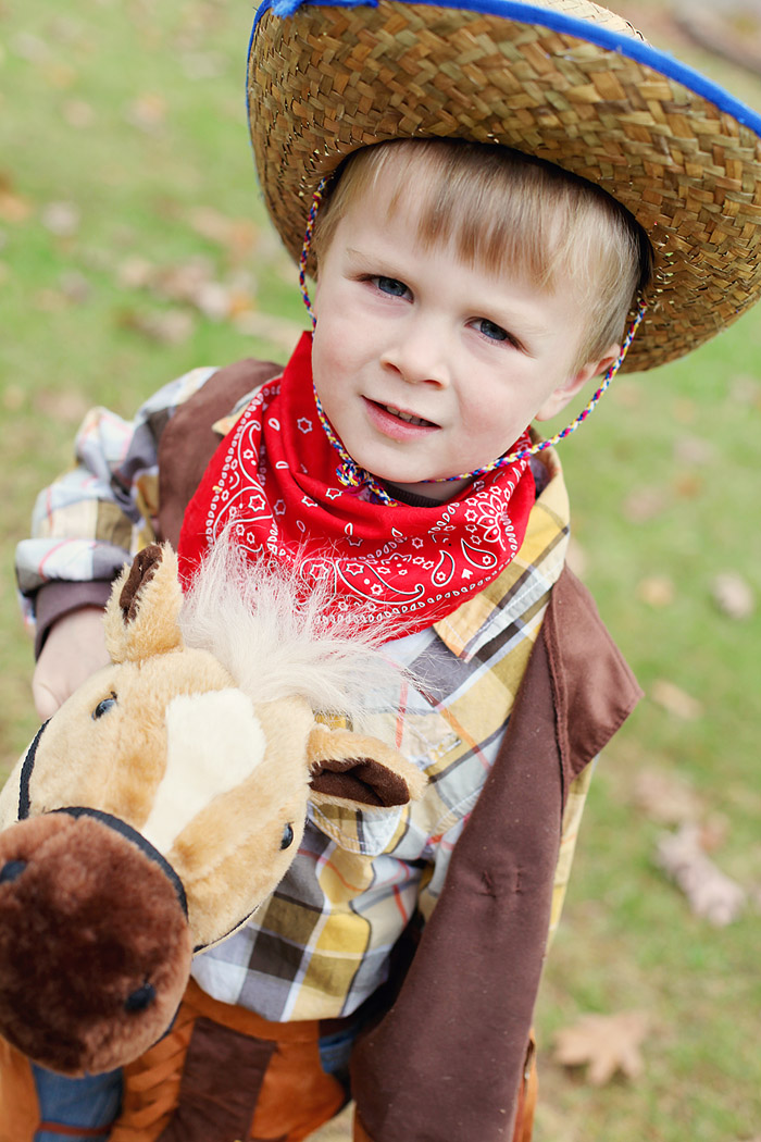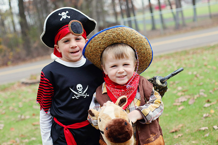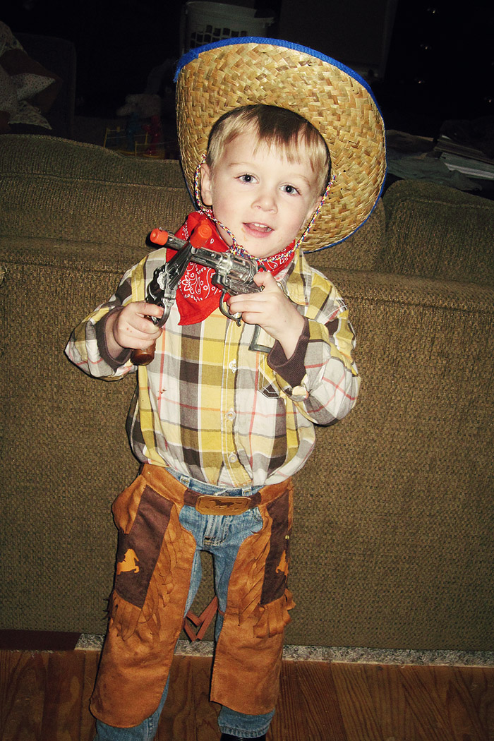 This Halloween was so fun!  It has always been one of my favorite holidays for whatever odd reason.  I have lots of great fun memories of Halloween as a child.  I hope the boys do as they grow up as well!   This year I really tried to utilize things we had at home to make their costume.  Hudsons was all our own stuff, aside from the borrowed cowboy boots from Brady Howard.  We had a bit of Porter’s costume but my mom ended up finding his shirt/pants for like $5 at the resale shop (new!) and so part of his costume was purchased.   Oh well!