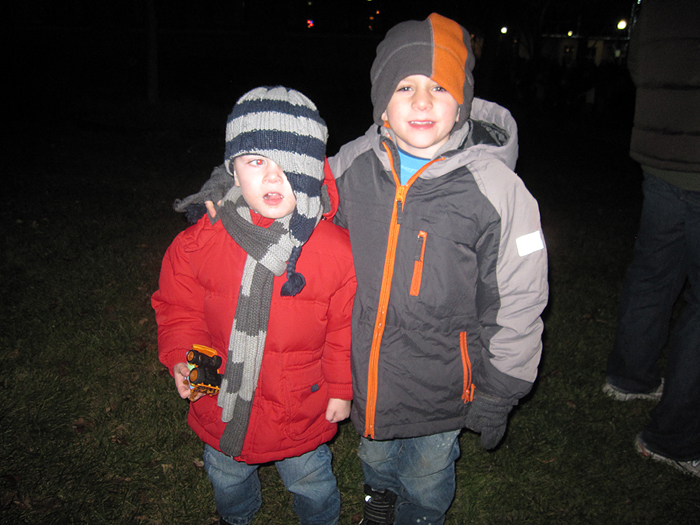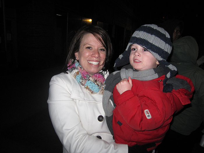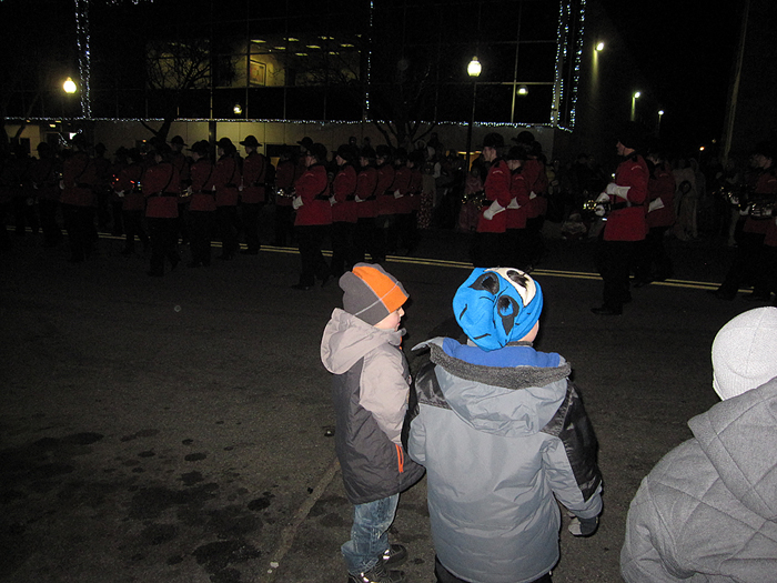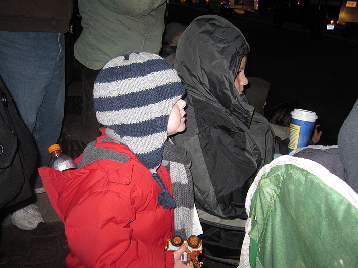 This is the third (or 4th?) year that we’ve gone to the Christmas Parade downtown and I swear to goodness we get amnesia every year about how darn cold it actually is. This year was really windy, and I didn’t have a hat or even a really warm coat that actually zipped/buttoned up without making me look like a stuffed sausage. (the coat I wore fit, but wasn’t that warm). The boys were bundled, but still cold. And stupid me… wore shoes instead of my warm Uggs. My feet FROZE and it wasn’t until we were walking back to the car I thought WTF… I have BOOTS that are so WARM! Next year we vow to put the boys in snowpants and bring blankets and hot cocoa. Yeah. I’m pretty sure we say that every year!