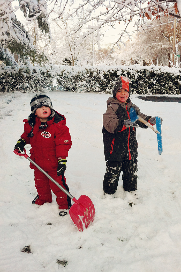 The boys were SO excited to see snow on the ground. I think we got around 5 inches or so? Maybe? They were up at 7 and were begging me to go outside. The sun wasn’t even up! However, by 7:30am they had me out of bed and they were running around the house in their underwear screaming with excitement. We all bundled up and were out in the snow by 7:45am. WHEW! Both of the boys loved shoveling the sidewalk and Porter ended up shoveling almost half of our driveway. They spent a good 2 hours outside playing! The rest of our day was spent inside by the fire, watching movies and doing a little laundry. Perfect, perfect day.