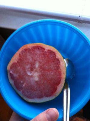 11/28 I heard noise in the kitchen. Assumed Porter was having pie for breakfast. Then he appeared in my room with this…. He had made me grapefruit for breakfast. And he didn’t even cut his finger with the big black knife, he said!! Hahaha! I love this kid.
