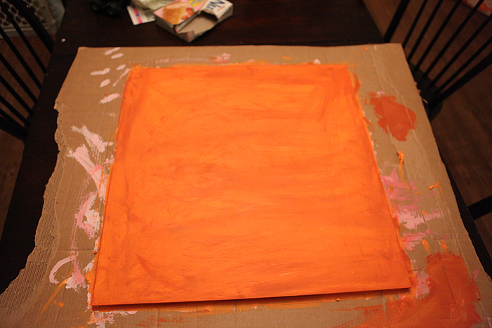 After that dried, I put a nice coat of a light mango orange color, and then over top lightly brushed/glazed some burnt orange.  Then, let it all dry.