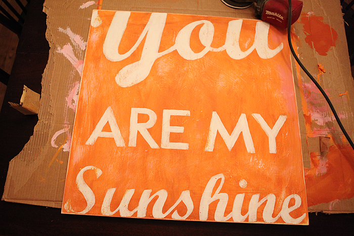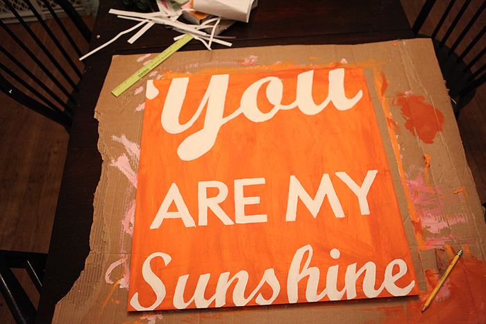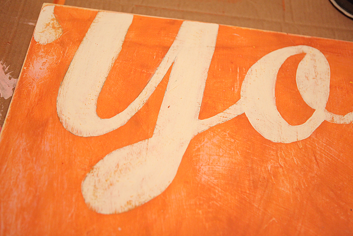 So, then I painted in the letters…  (I put one full coat on and then went over some lighter spots with a second coat, but didn’t worry too much about it being super even).