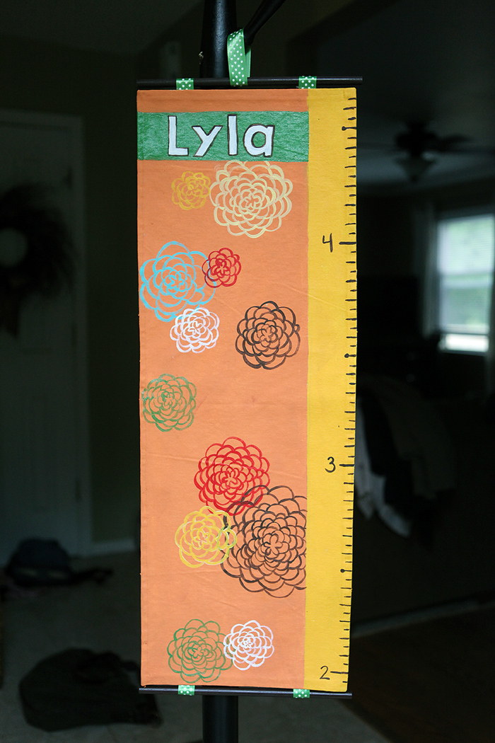 Last summer I made growth charts for Jillian and Lyla, Jane’s twins.  These also match their nursery.