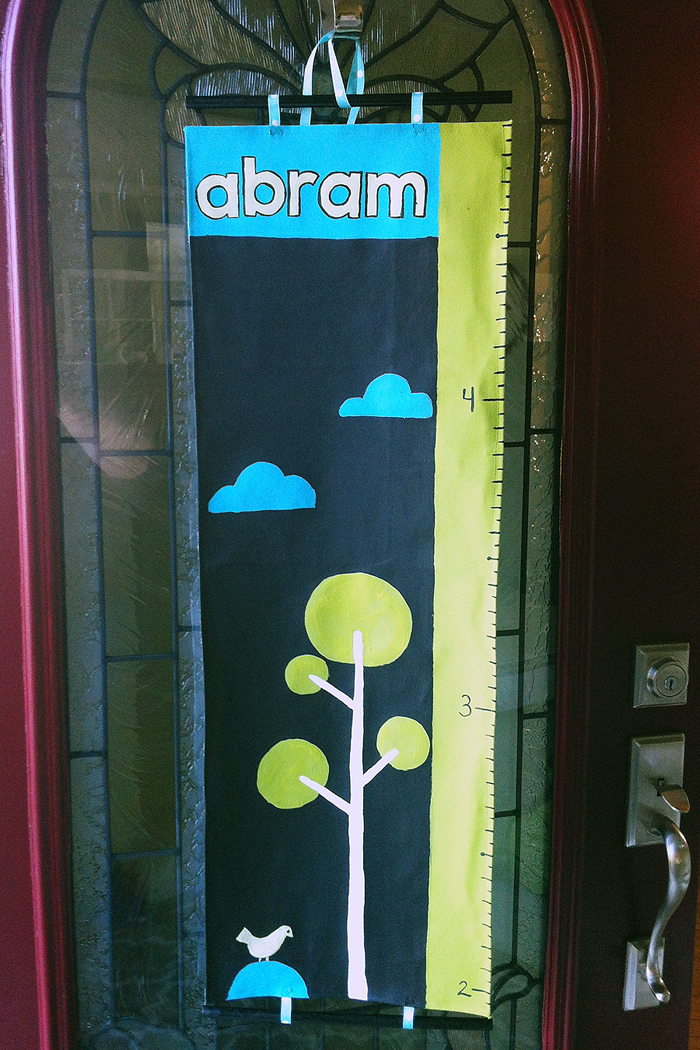 This weekend I was pretty crafty… painted a shelf and picture frame for baby sis’ room, made a growth chart for a friends new baby boy, finished a painting for Hudson’s room and… hmmm… well, the weekend isn’t over, is it?!