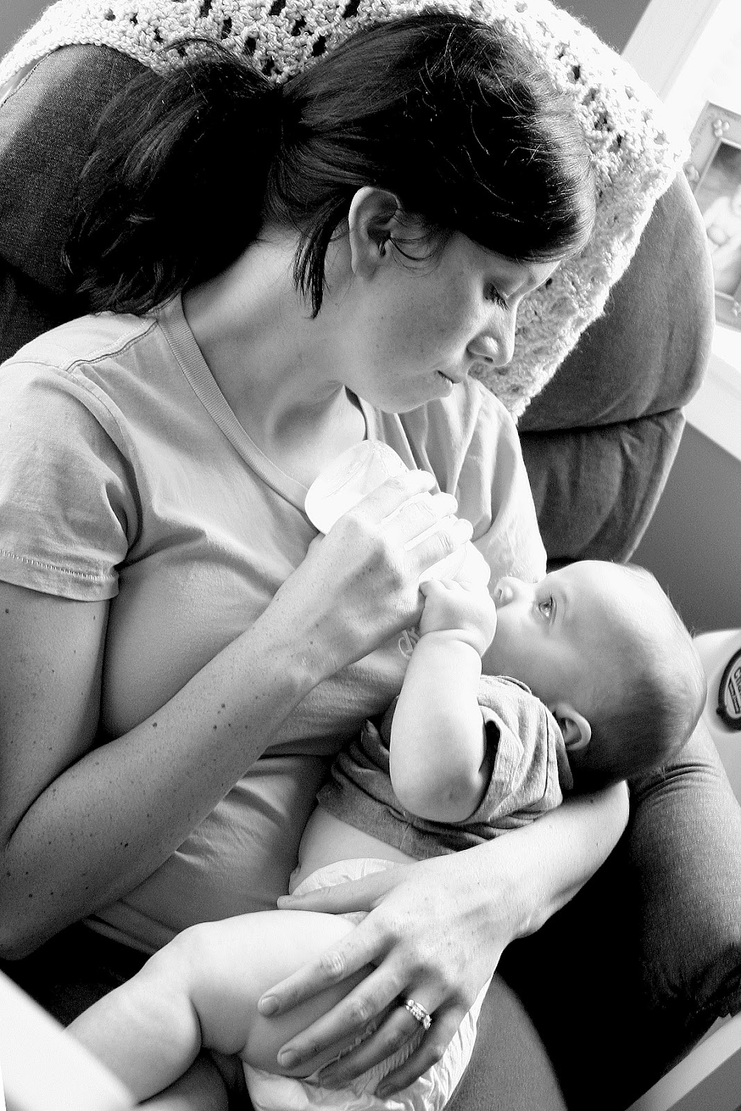 Tonight my friend/cousin, Amber, posted a link to an article called “Breastfeeding and the Agony of Baby’s First Bottle.”  Now, she and I have discussed our thoughts on this subject as both of us have experienced that “agony of baby’s first bottle.”  She nursed her oldest son, and was unable to with her 2nd.  She suffered great guilt and feelings of failure when she began formula feeding.  I had a somewhat simliar experience with Porter,  I had trouble breastfeeding Porter and as a first time mom of course I felt like a failure to switch him to formula.
