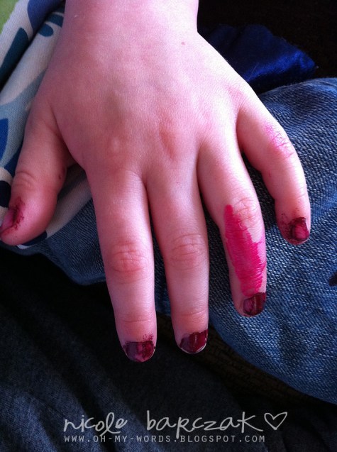 20 minutes later Porter calls to me “Mom…. Hudson has your nail polish and its all over the walls and your bed!”
