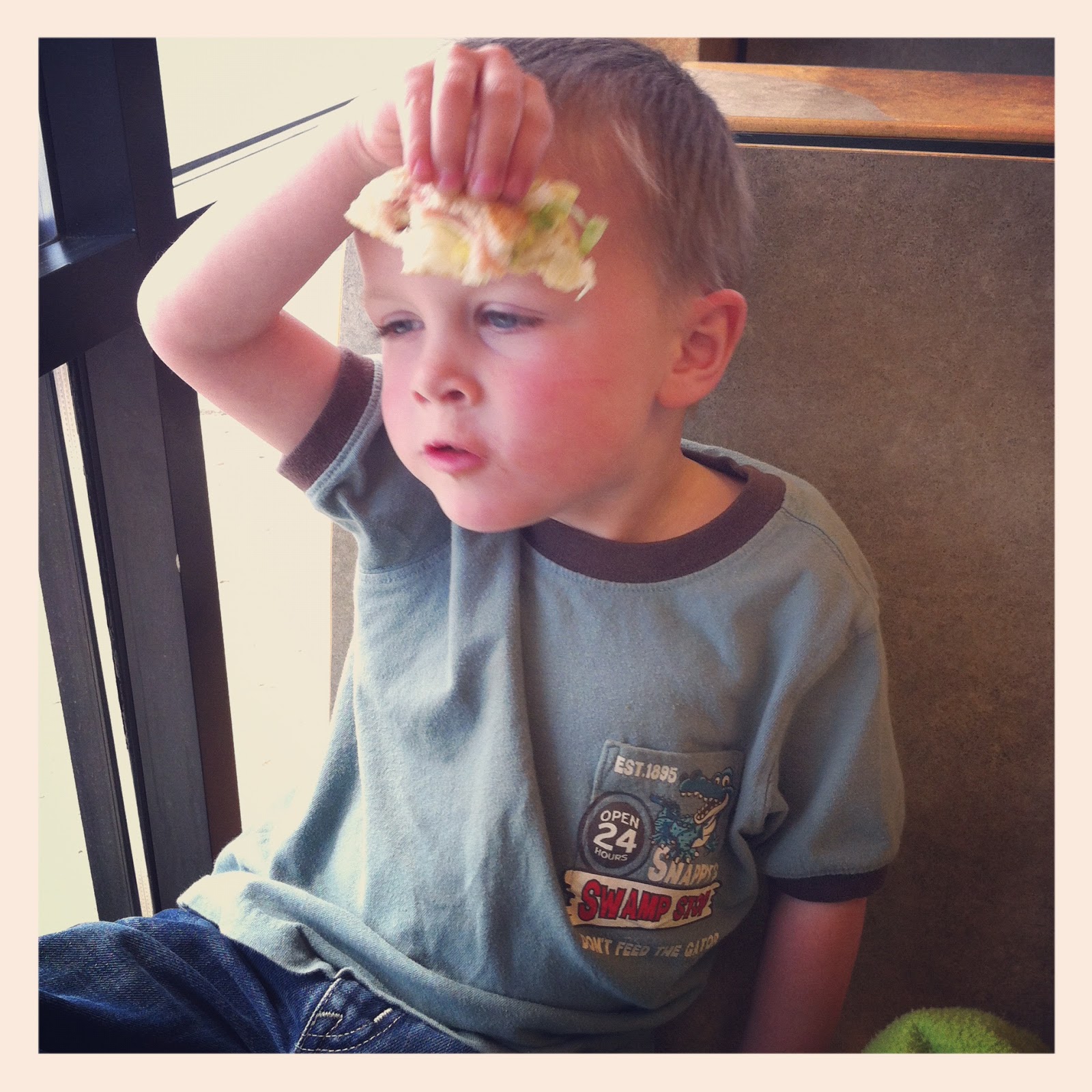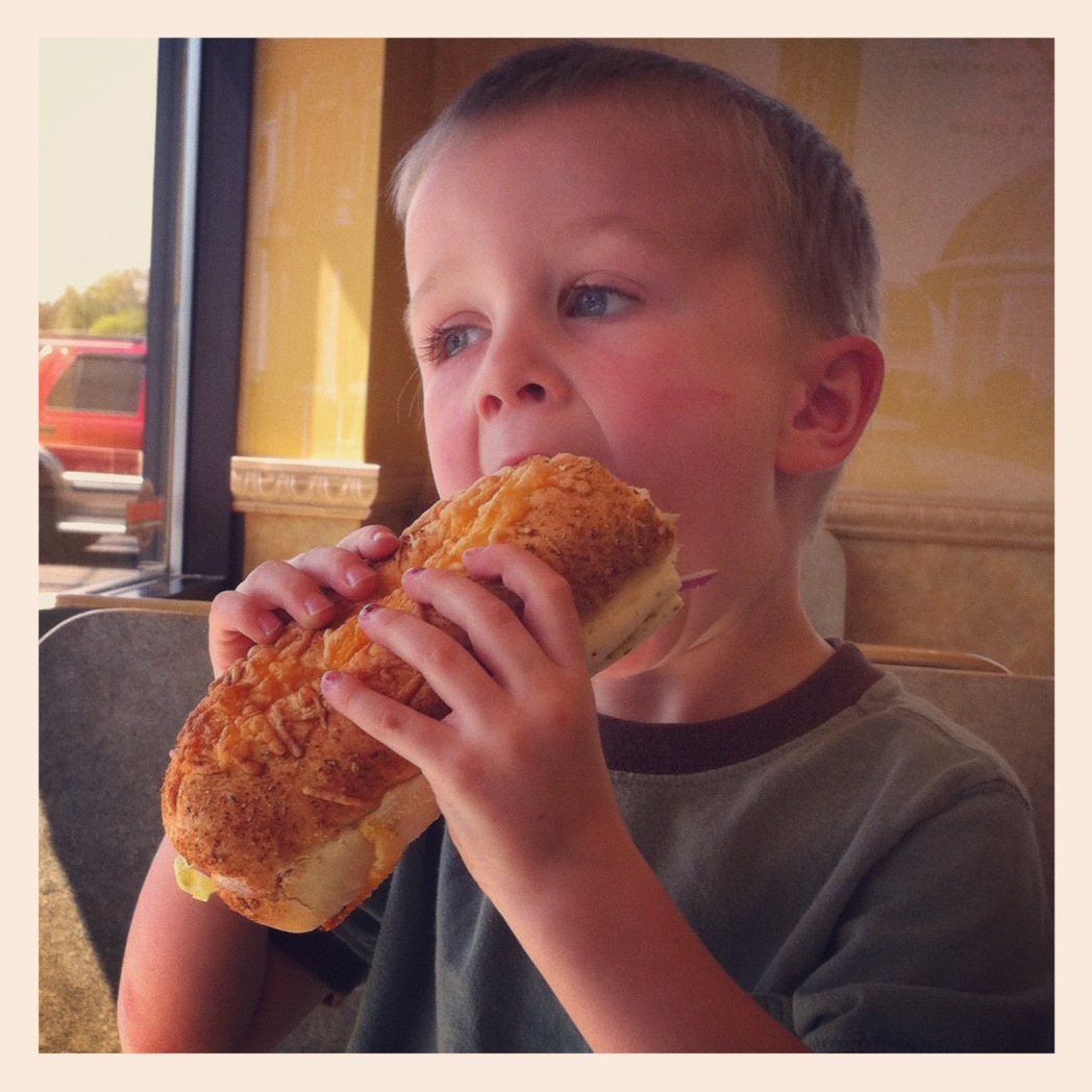 After picking Hudson up from my sisters we stopped at Subway for lunch. He started out with a 6″ sub.