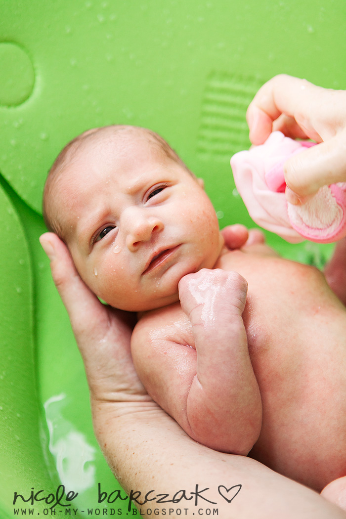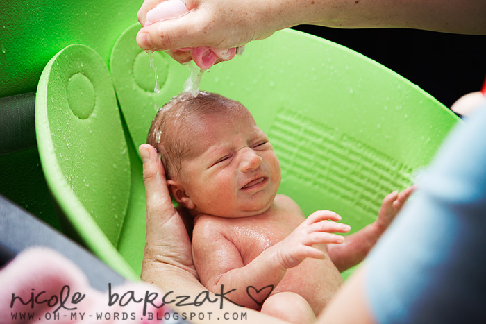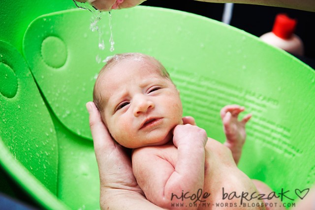 • First Bath:  Ry and I gave her a bath Wednesday and she did really well.  She didn’t cry at all, though grunted and groaned a few times.  Then, just as we got her wrapped up in her towel all fresh and clean she pooped in it.  Nice!  So that’s what her smirk was the entire time we thought she was enjoying her bath HAH!