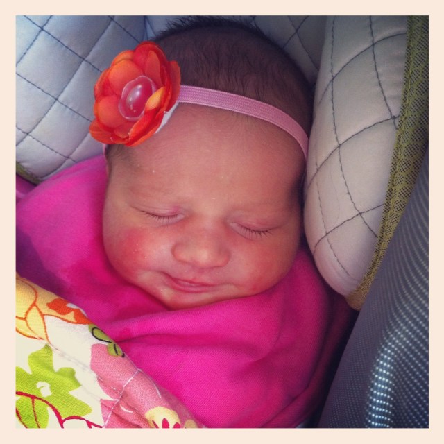 Yes, I had to get her all prettied up with a headband for her doctor’s appointment.  I’m ridiculous, I know. I’ve waited a long time to have a little girl to dress up 🙂