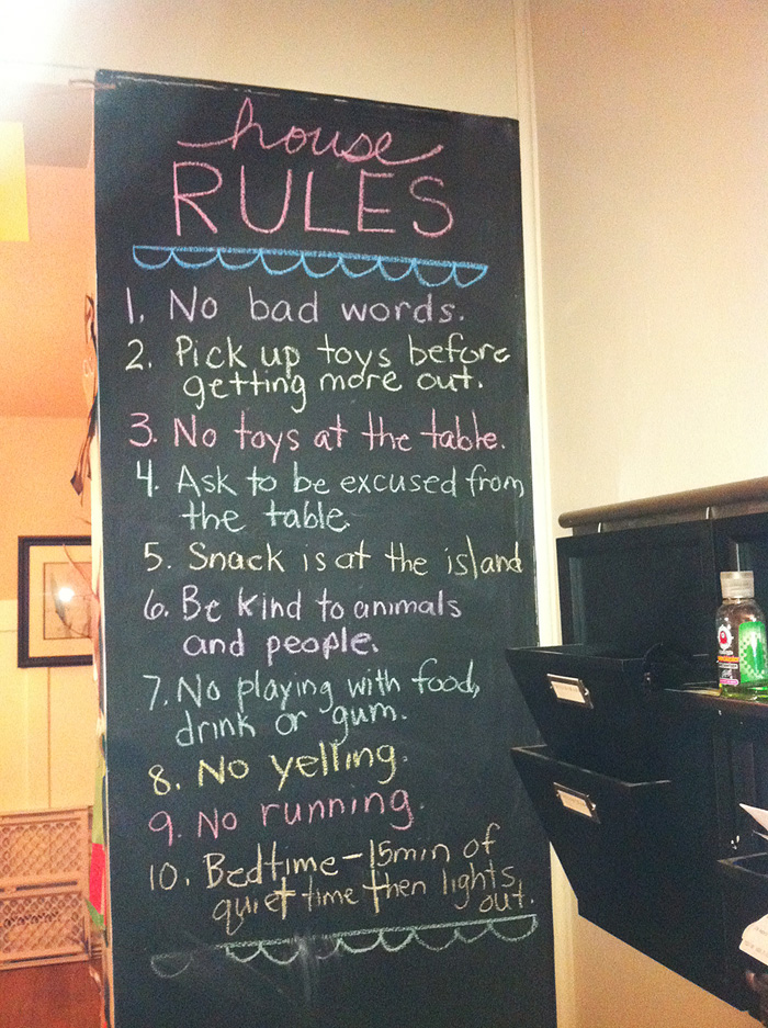 My first thought was “Hmm… why did Ryan erase the House Rules?” And then I saw it. Do you? Down there at the bottom of the chalk board… see it? “NO RULES”