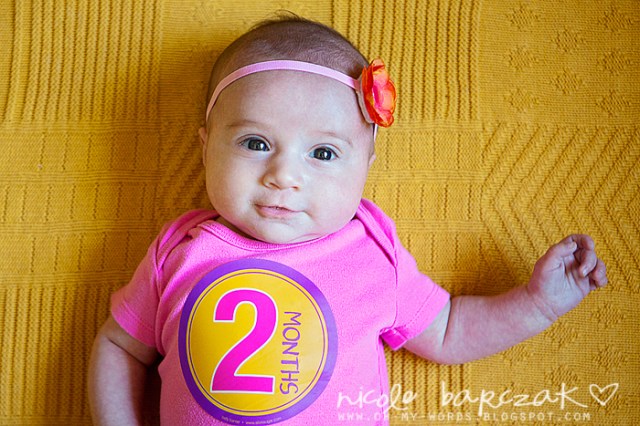 Her hair on the top of her head fell out weeks ago, and just this week its been growing back in pretty quickly. It is dark! She also recently found her hands and has been putting them in her mouth. I wonder if she’ll become a thumb sucker? I’ve never had one of those.
