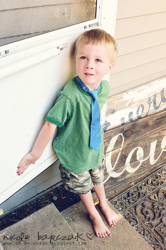 - The past 2 days Hudson has been donning a tie with his t-shirts. Quite random… out of the blue. So, you’ll find him with red painted nails and a tie. He also like to wear mis-matching flip flops. Nice. I love this kids quirky style, and he’s so confident about it too.