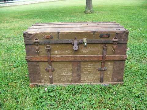 - I got an old antique steamer trunk and I’m not sure what to do with it. It is pretty large. Its not in super great condition (I think it has 1891 dated on it?) but I love it. I thought of using it as a coffee table but it is kind of tall (well, a little taller than our coffee table). Maybe just use it to store quilts in? It stinks inside though…