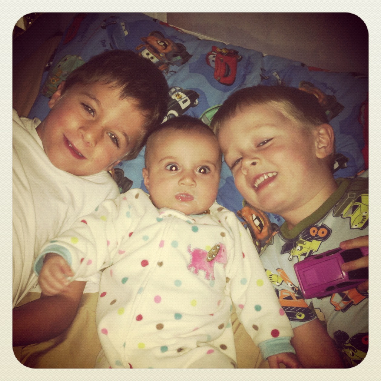 Many mornings he gets her out of bed and brings her to our room for me.