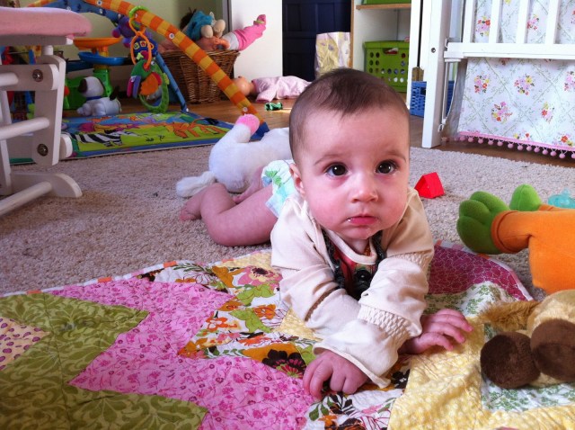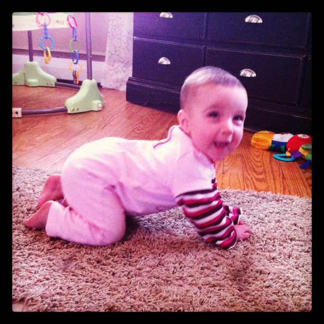 Look who is starting to crawl! She has found her knees. Now to figure out the coordination!