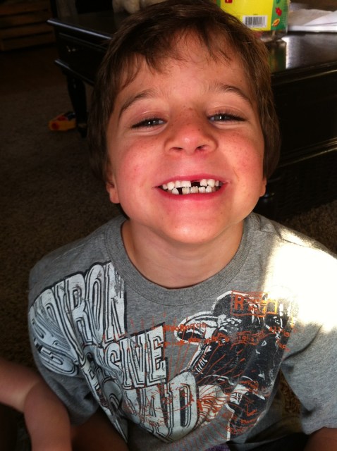 Monday Porter came home from school and asked me to pull his tooth out. EEWWW. I did it, though. Out with the tooth! That’d be #4!