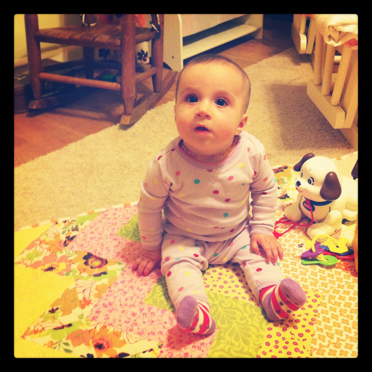 Gawwwwd I love this kid. She is so cute. Teeny tiny thing still wearing 3-6mo Old Navy jams that typically run so tiny small.