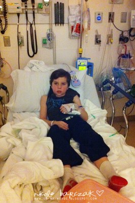 6:30pm: We were sent back to a room and prepped to have him put under and either stitched up or his tonsil taken out (not clear at this moment what route they’re going). First attempt at an IV was unsuccessful. Porter screamed and told te nurse to piss off. (Eeeek. Cue parents of the year award as I bit my tongue trying not to laugh)