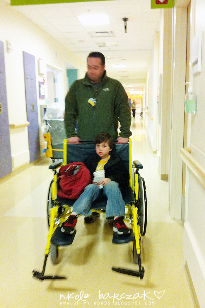 9:00pm: At Motts we for checked in and in a room immediately. Two doctors saw him and decided he needed to have it looked at and repaired in an OR.