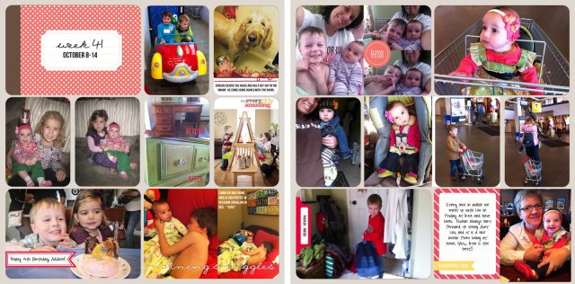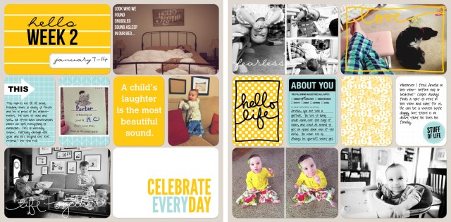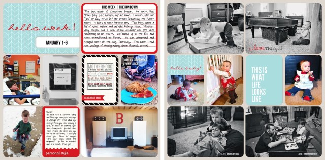 Something I have begun recently is Digital Project Life.  So far, 3 weeks in, I am feeling very accomplished and in control of one area of my life that I am desperate to stay on top of.  In addition to feeling good about 2013, I’ve been able to catch up with multiple weeks from 2012 within the past 2 to 3 weeks.  Sure, these layouts aren’t as great as traditional paper layouts with all the artifacts and dimensional goodies, but they’re done and I can print and put them in my albums.  I am hoping I can stay on top of this and try to keep it simple.  My family’s memories are so important to me and so important to have printed and in an album.  The kids adore looking at their albums, too.