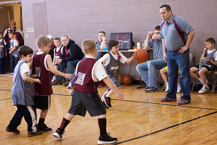 The 2nd game he improved a little bit more. He was a little more focused on the actual game portion…. he did a lot of skipping and galloping around the outside of the “core” of players who were more aggressive with the ball and a little more focused on the game. He reminded me of Cooper when we go to the dog park. He wants to play, but he’s a little intimidated to jump into the pack so he kind of paces the perimeter. He stayed with it, though, and he had a good time. He felt involved (though wasn’t quite that involved), he did get the ball a few times. He likes to be the guy who passes the ball into the court (I have no idea what that is called… you know when the other team fouls and then the opposite team passes the ball into the court??).