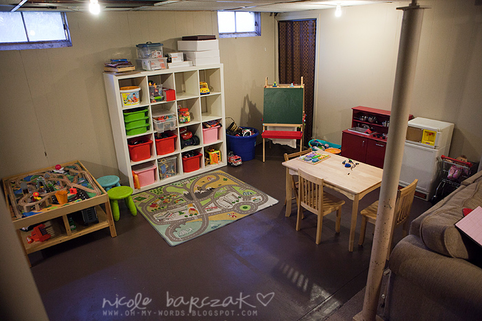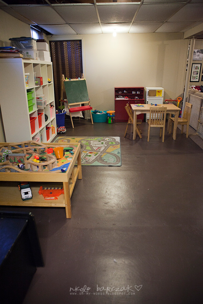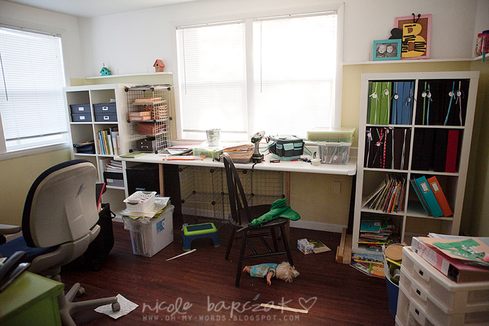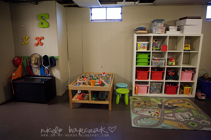 We decided to swap the playroom (a smaller room off the living room with my office space in the basement. This would give us a family room/playroom space in the basement as well as the guest room/laundry room down there. So this week I spent my days trying to organize the rooms and get everything switched over.