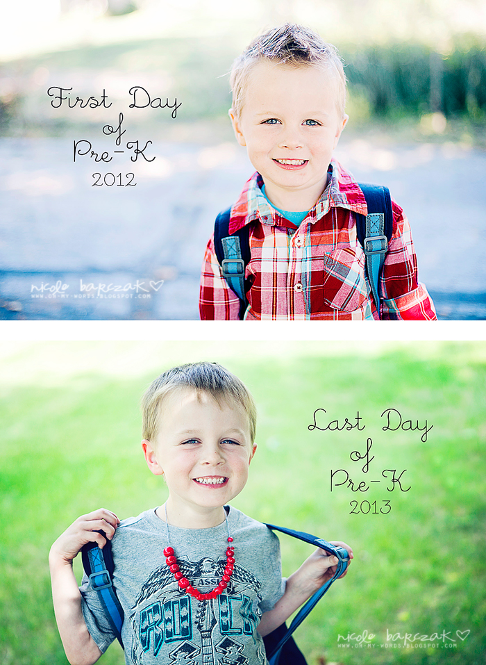 This week was a pretty big week for him- full of so many milestones. He turned 5. He went to his last day of Pre-School and he had his Pre-School graduation! I’m so glad I decided to take the kids’ pictures on the first and last day of school. It is amazing how much they change in one short school year.