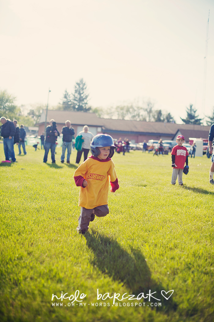 After that inning was done he came up smiling and I hugged him and asked “Did you have a good time?” “Yeah!” Then I asked “Did you know that you were supposed to run after the ball when you were out there?” Laughing he says “No I didn’t!” HAHAH! So this entire time he thought he was supposed to just stand out there. NO WONDER he thought his games were so boring!!!