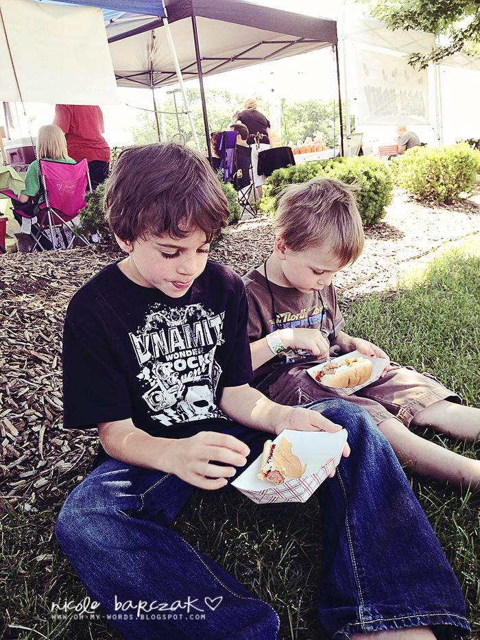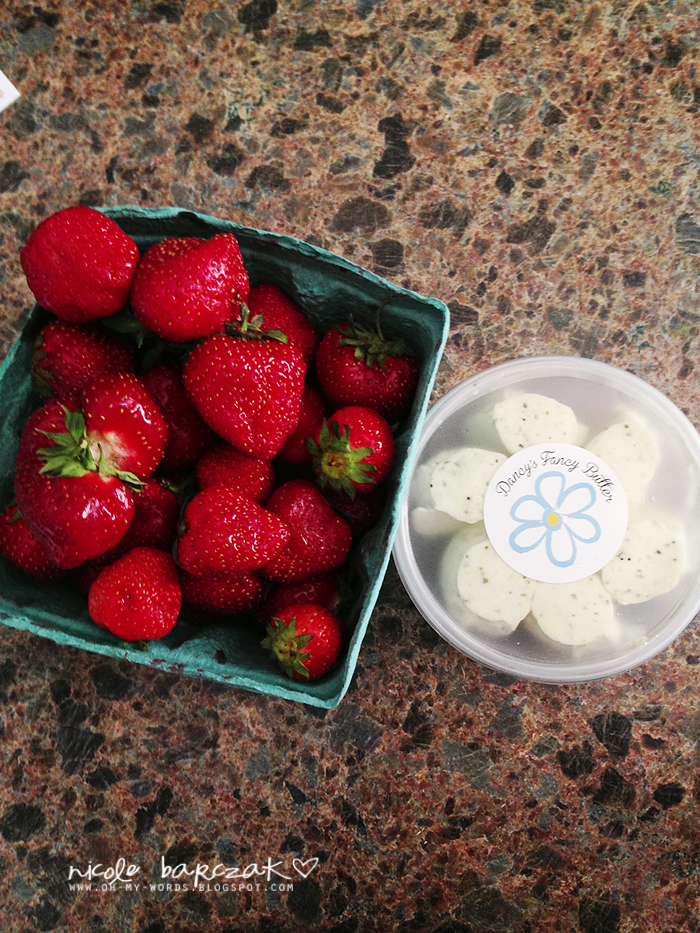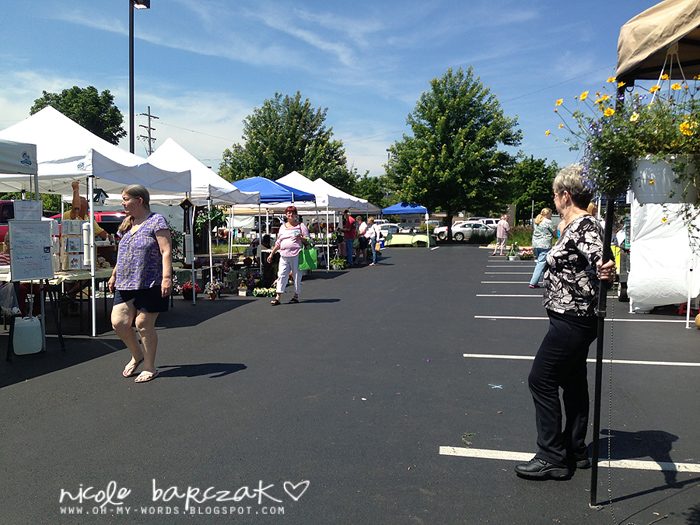 We stopped by our local farmers market one Thursday. We ended up running into a teacher I student taught under and she gave the boys hit dogs for lunch. We are in the shade and then browsed a bit more. So many things i wanted to buy! We ended up leaving with some Amish strawberries and a small container of yummy garlic butter.