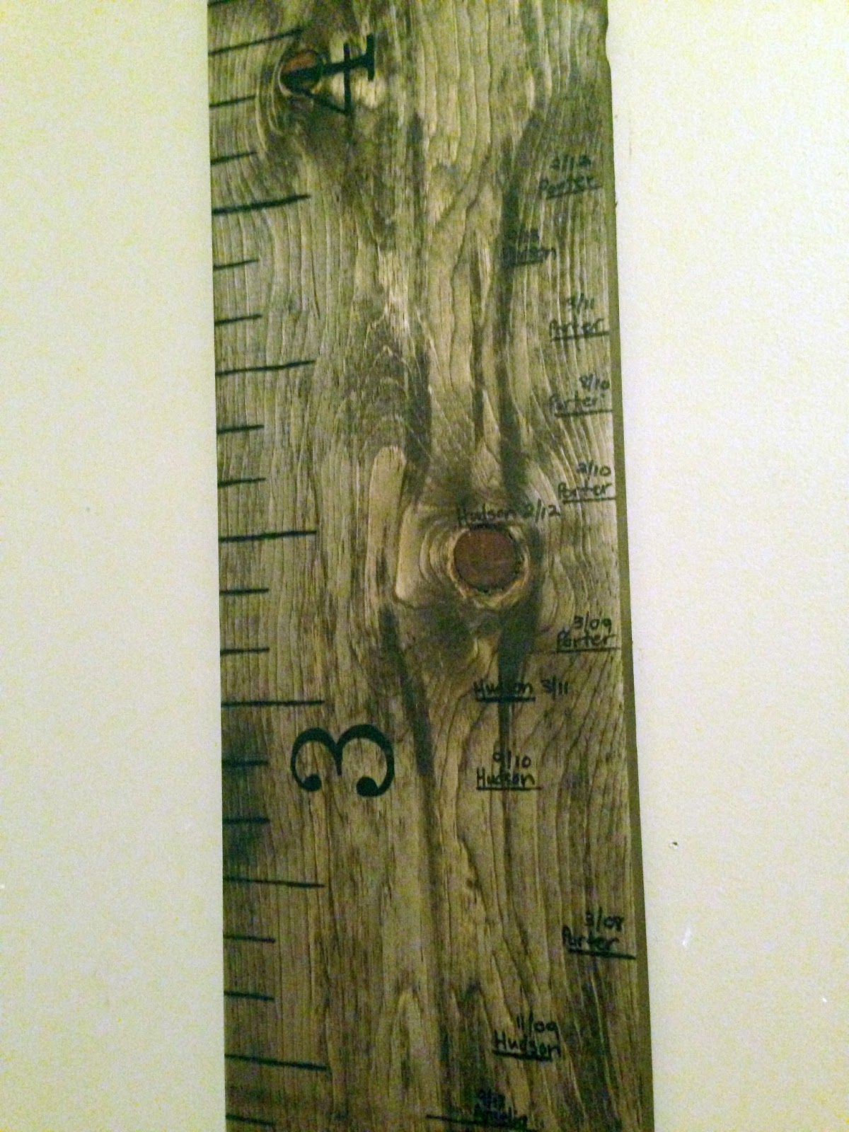 Ok so how did I get on this topic? The title of my post here is Super Duper Ruler. Uhm. Yeah. So, I also am addicted to pinning really neat DIY and Knock-Off ideas for Pottery Barn. So I decided on a whim to make this awesome ruler for measuring the kids….