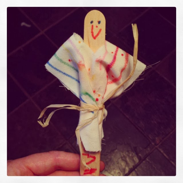 Hudson made this cute little dude at church this morning. I asked him to tell me the story about him… who is it? Why did they make these guys today?