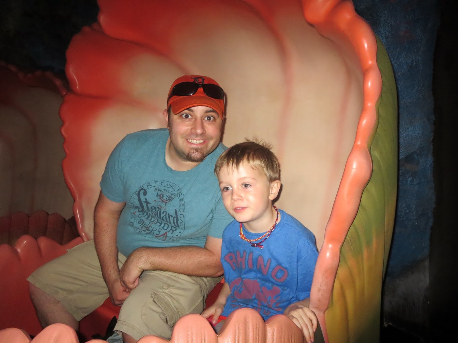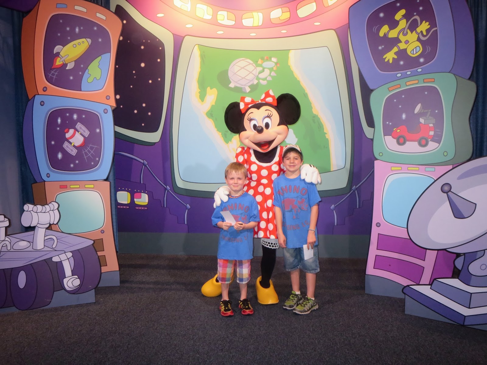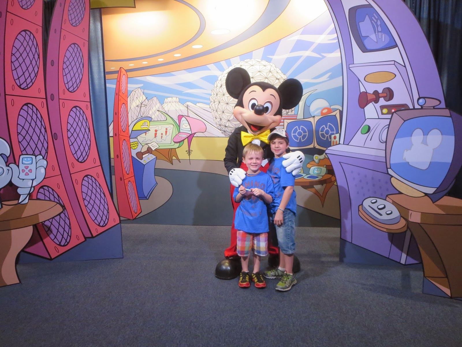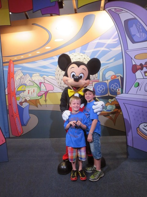 Then we went to Mission: Space, which had like a 10 min wait. That’s the magic number this week! We rode the green one, and of course Porter BAWLED manically before getting on, despite another younger boy telling him it was fun and not scary. Sure as shit, he LOVED it so we got on again. We couldn’t get them to try the orange/extreme ride but oh well. We checked out Innoventions, and then had lunch at the Electric Umbrella. Pretty good meal!